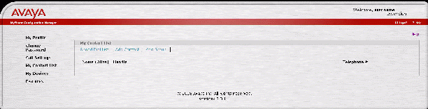 On the left navigation menu, click My Contact List to access the My Contact List page. By default, the My Contact List is displayed when you log on to the SIP interface of the MyPhone Configuration Manager.