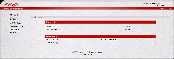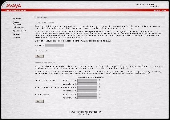 Use the Call Settings page to manage the Extension to Cellular or EC500 and Enhanced Call Forward features. Use these two features of MyPhone when you are out of the office.